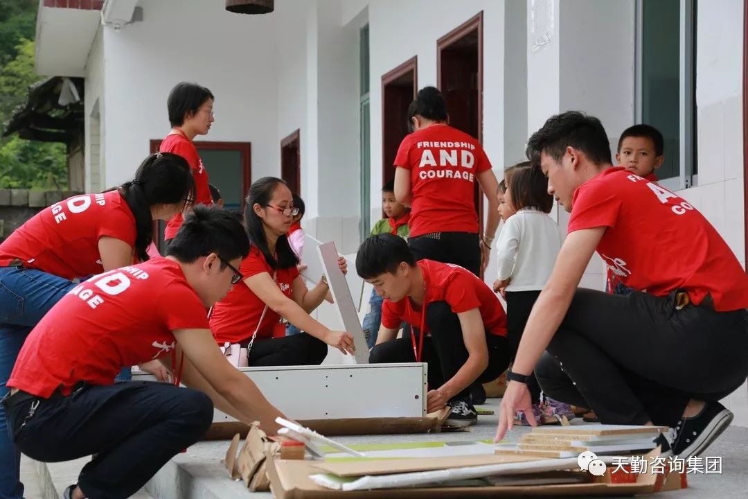 圖:天勤咨詢(xún)集團(tuán)愛(ài)心小組成員正在為孩子們組裝課桌