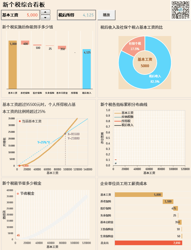 最后用一個(gè)圖表組成的動(dòng)態(tài)看板來綜合觀察新個(gè)稅的情況。