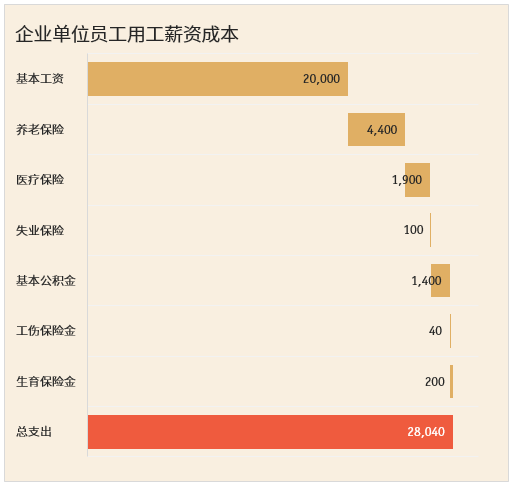 新個(gè)稅實(shí)施后,對(duì)于企業(yè)來講,用工薪資成本基本沒有變化,仍然是如下圖的結(jié)構(gòu),(以員工月薪20000元為例):