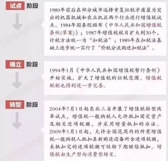 增值稅在我國(guó)大致經(jīng)歷了試點(diǎn)、確立、轉(zhuǎn)型改革和擴(kuò)圍改革四個(gè)主要階段。