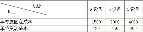 K公司有設(shè)備A每年折舊費(fèi)15000元,設(shè)備B每年折舊費(fèi)25000元?,F(xiàn)在準(zhǔn)備生產(chǎn)產(chǎn)品,若用設(shè)備A生產(chǎn),則需支付一次性改裝費(fèi)用50000元,若用設(shè)備B生產(chǎn),則需支付一次性改裝費(fèi)用60000元。用設(shè)備A生產(chǎn)產(chǎn)品單位變動(dòng)成本為50元,用設(shè)備B生產(chǎn)產(chǎn)品單位變動(dòng)成本為60元?! ?/span>