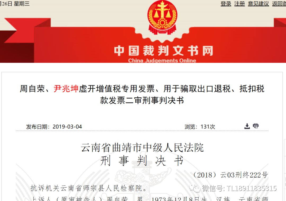 上訴人(原審被告人)尹兆坤,曾用名尹兆昆,男,1982年9月11日生,漢族,云南省師宗縣人,大專文化,云南普瑞生物制藥(集團(tuán))有限公司銷售主管,住師宗縣。因涉嫌虛開增值稅專用發(fā)票、抵扣稅款發(fā)票一案,于2016年11月22日被師宗縣公安局刑事拘留,同年12月29日經(jīng)師宗縣人民檢察院批準(zhǔn)逮捕,次日由師宗縣公安局執(zhí)行逮捕?,F(xiàn)羈押于師宗縣看守所。