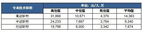從專業(yè)技術職稱看,高級職稱工資指導價位平均值最高,為14363元/月,中級職稱為9340元/月,初級職稱為7674元/月,高級職稱是初級職稱的近2倍。