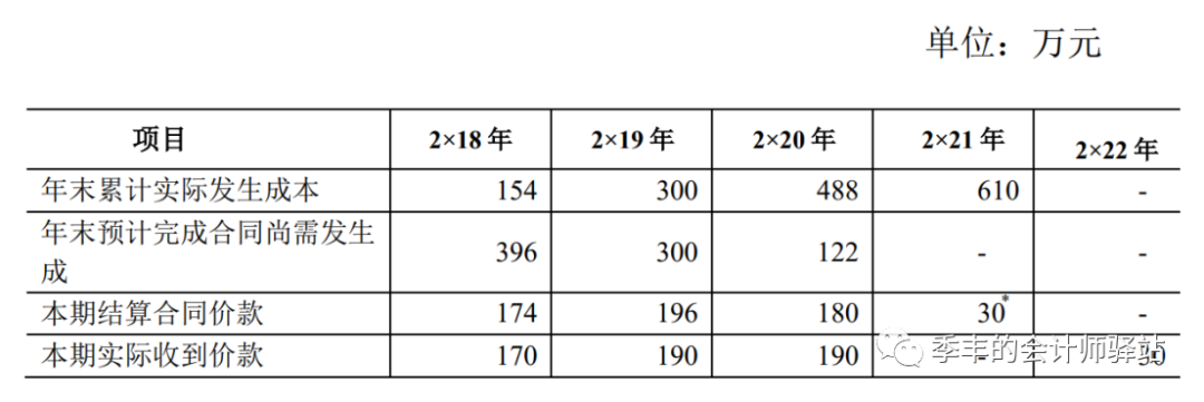 【例】甲建筑公司與其客戶簽訂一項總金額為580萬元的固定造價合同,該合同不可撤銷。甲公司負責工程的施工及全面管理,客戶按照第三方工程監(jiān)理公司確認的工程完工量,每年與甲公司結(jié)算一次;該工程已于2×18年2月開工,預計2×21年6月完工;預計可能發(fā)生的工程總成本為550萬元。到2×19年底,由于材料價格上漲等因素,甲公司將預計工程總成本調(diào)整為600萬元。2×20年末根據(jù)工程最新情況將預計工程總成本調(diào)整為610萬元。假定該建造工程整體構(gòu)成單項履約義務(wù),并屬于在某一時段內(nèi)履行的履約義務(wù),該公司采用成本法確定履約進度,不考慮其他相關(guān)因素。該合同的其他有關(guān)資料如表所示。
